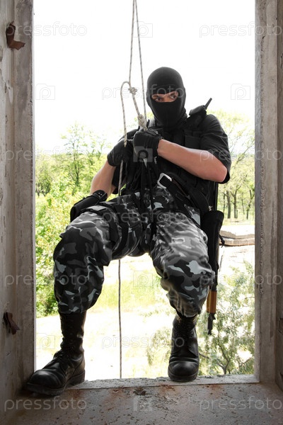 Военный в маске проникает в помещение