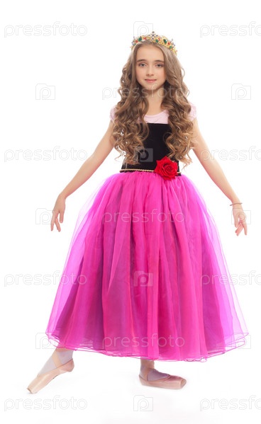 Девочка в розовом платье на белом фоне
