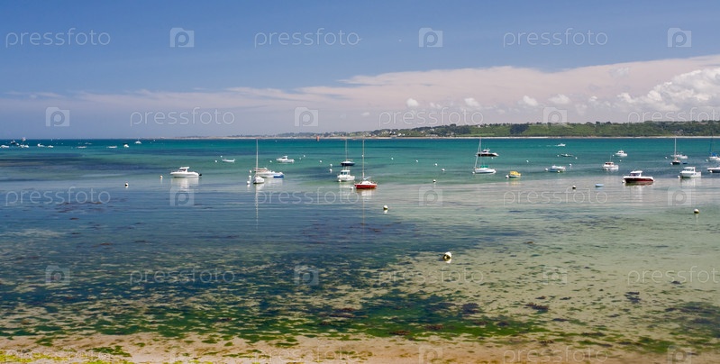 Пристань для яхт во время отлива в Перрос-Гирекке, Франция