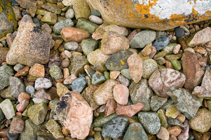 Галька из розового гранита на морском побережье в Бретани, Франция