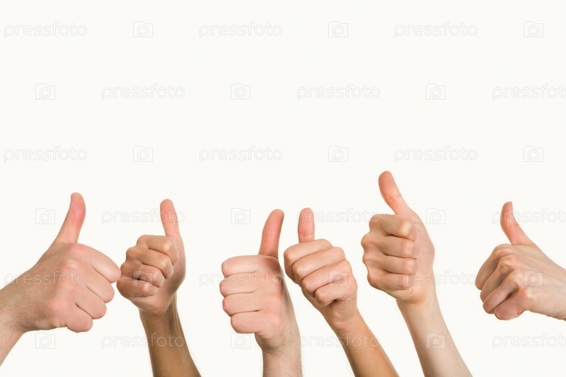 Линия группы человеческих кулаков, дающих большой палец вверх