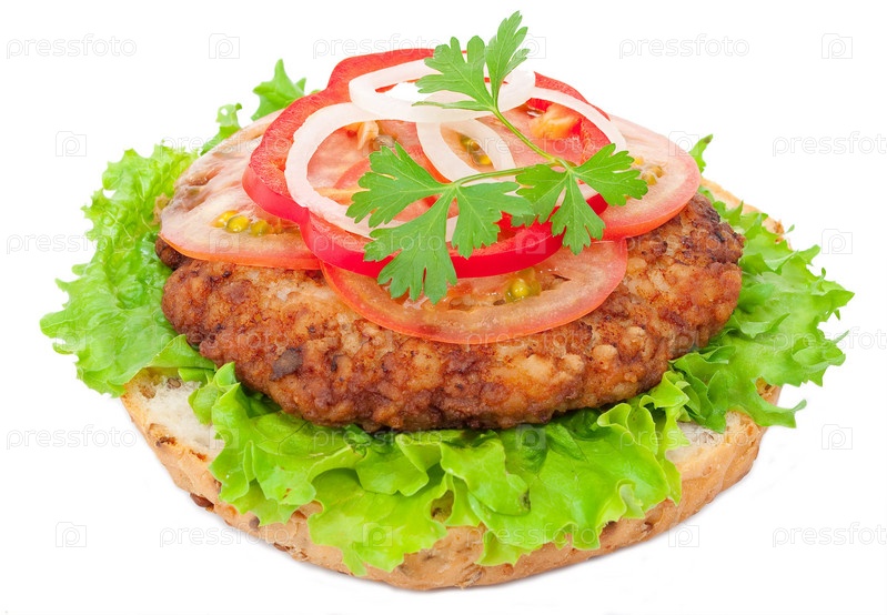 Бутерброд с котлетой и овощами
