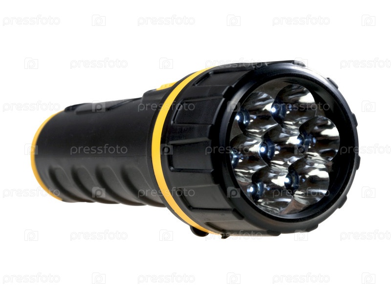 Электрический фонарик на белом фоне