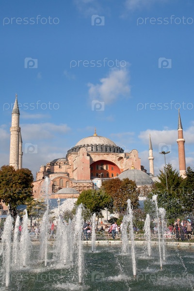 Фонтан на площади Султанахмет и Собор Святой Софии в Стамбуле