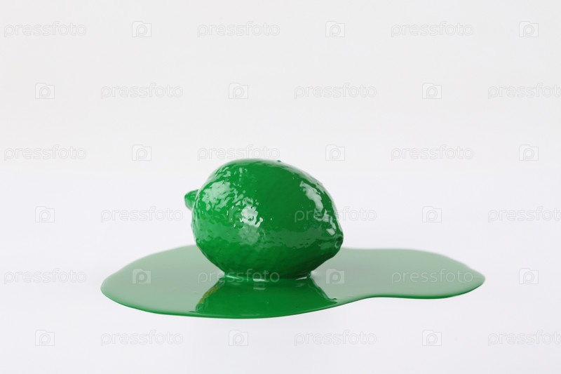 Лайм в зеленой краске на белом фоне