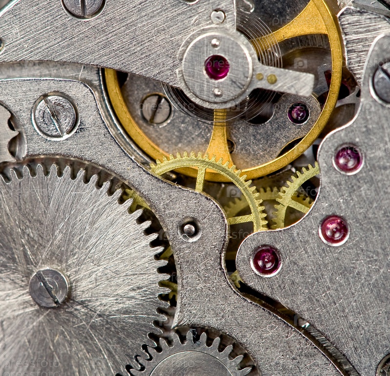 Детали часового механизма, крупный план