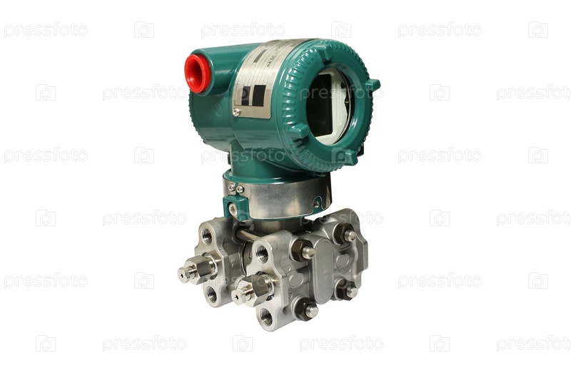 Датчик дифференциального давления. Близкий план. Изолированный на белом фоне