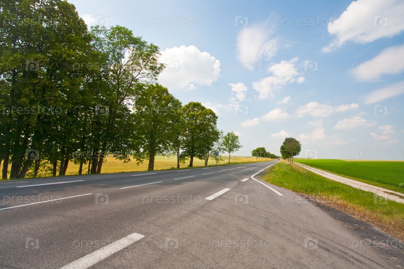 Пустое шоссе в сельской местности, летний солнечный день