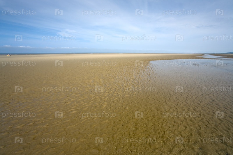 Ла-Манш (Английский канал) во время отлива, песок и голубое небо на горизонте