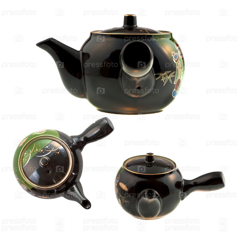 Черные китайские чайники на белом фоне
