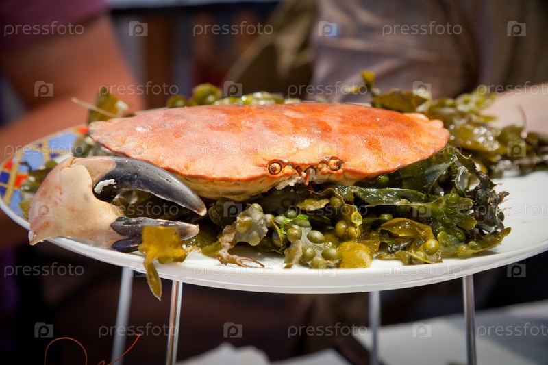 Краб на тарелке в ресторане