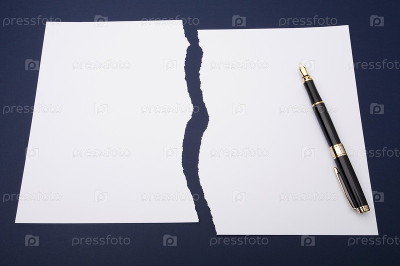 Ручка лежит на разорванном листе бумаги на черном фоне