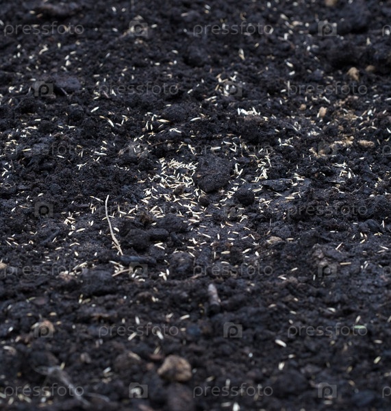 Семена травы в плодородной почве