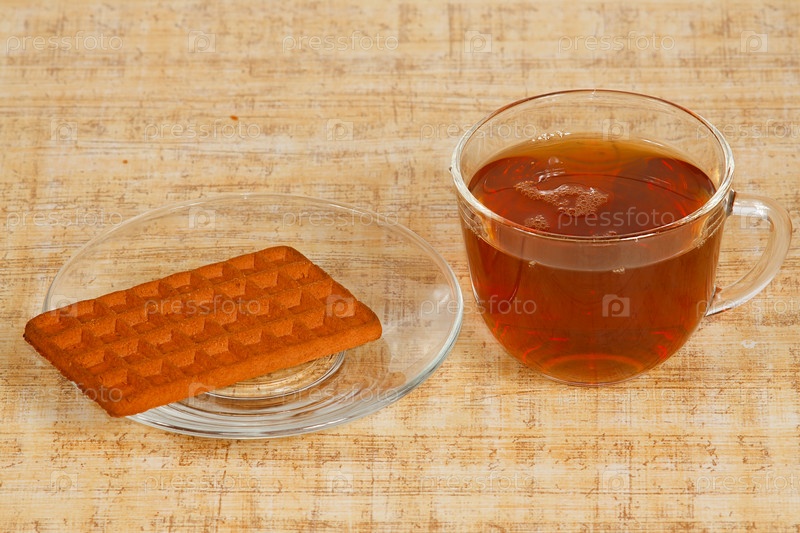 Кружка чая и печенье на столе
