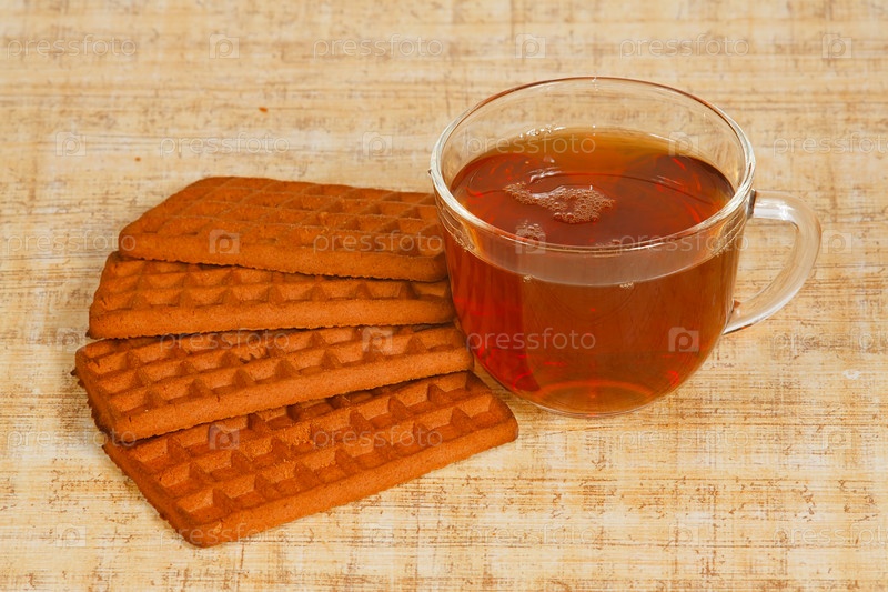 Кружка чая и печенье на столе