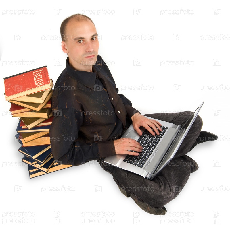 Студент с ноутбуком и книгами