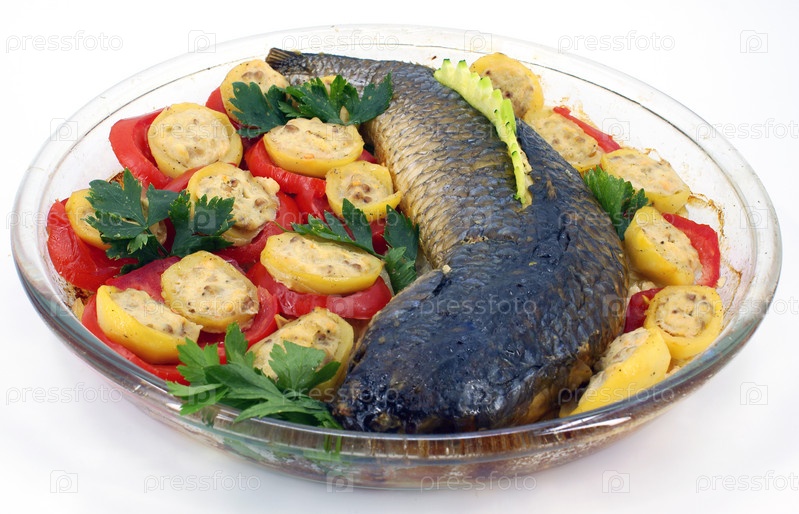 Выпечённая рыба с овощами