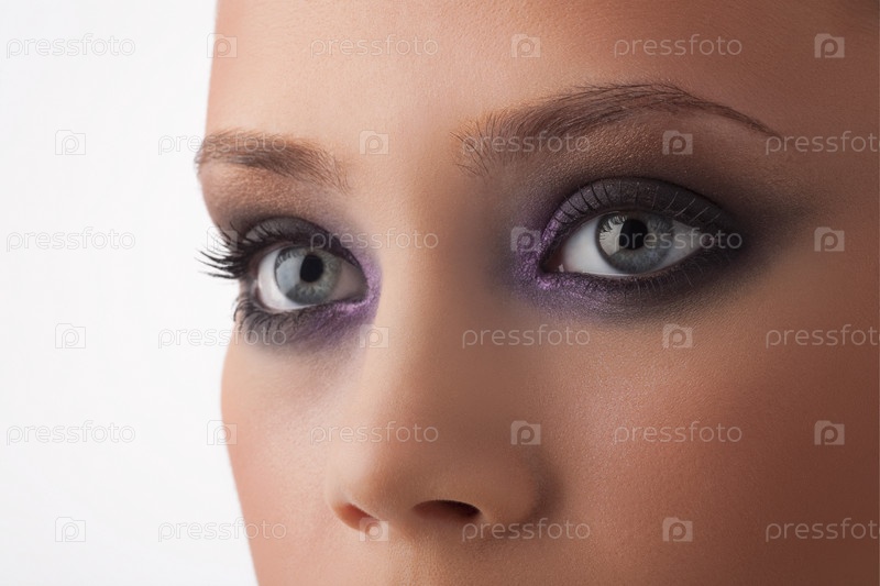 Часть лица женщины с ярким макияжем глаз