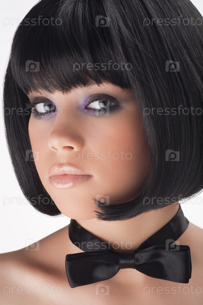 Портрет молодой женщины в черном парике, в стиле ретро