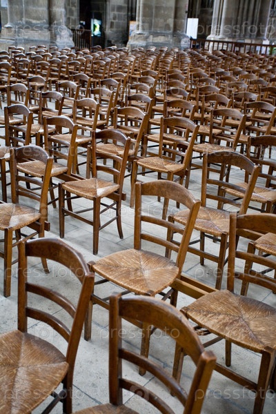 Деревянные стулья в соборе Нотр-Дам в Реймсе, Франция