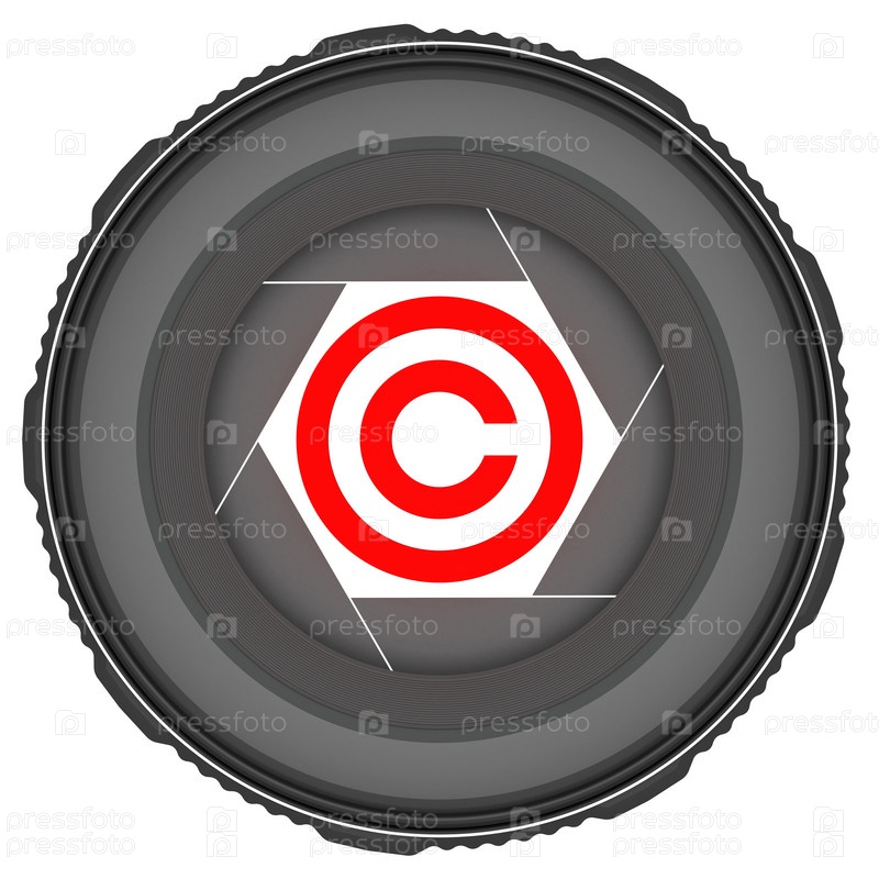 Объектив с символом авторского права