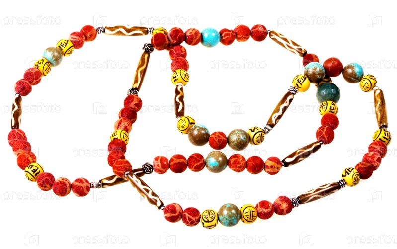Пластиковые бусы на белом фоне