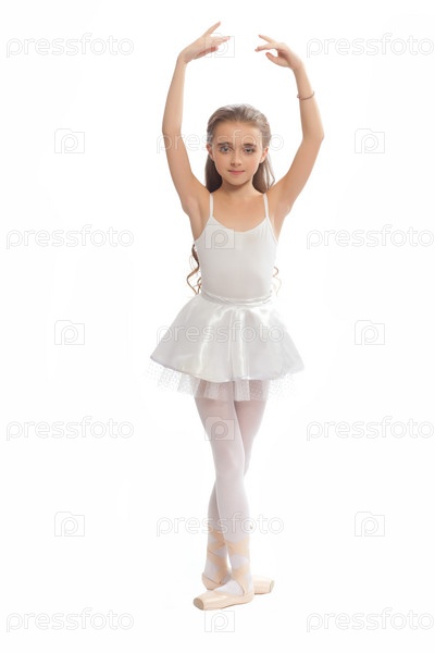 Девочка в костюме балерины на белом фоне