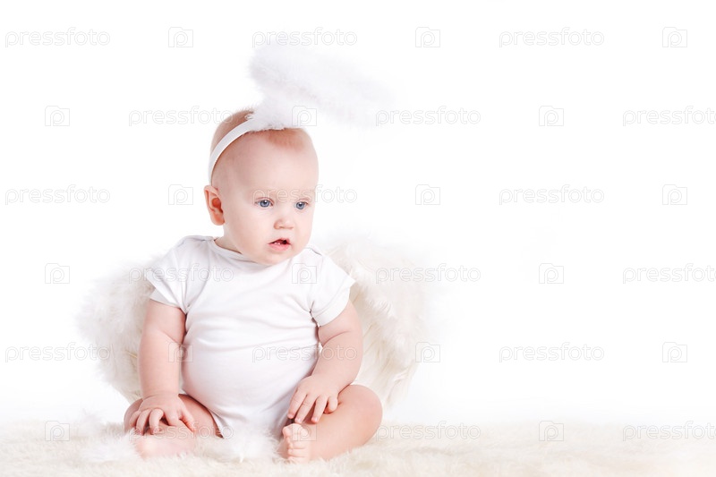 Красивый маленький мальчик в костюме ангела