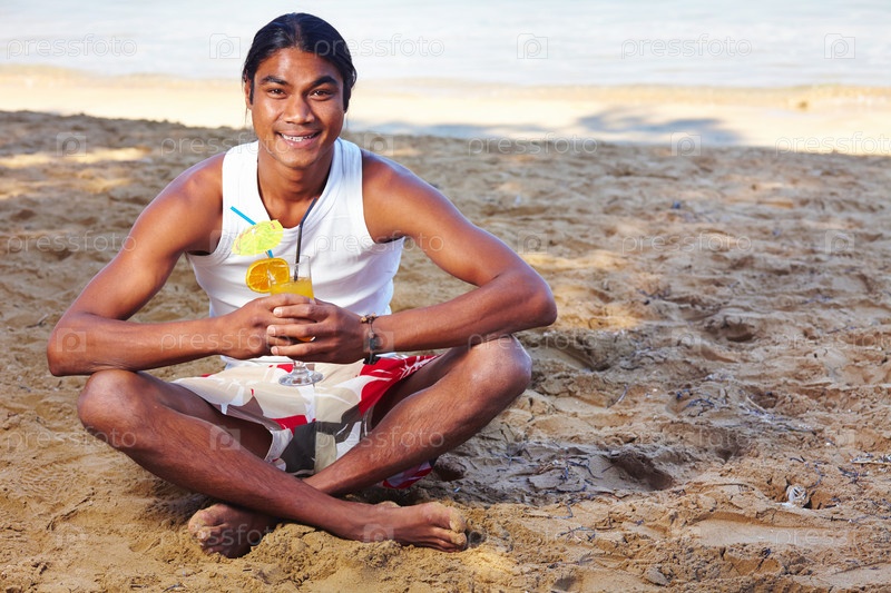 Мужчина с фруктовым коктейлем