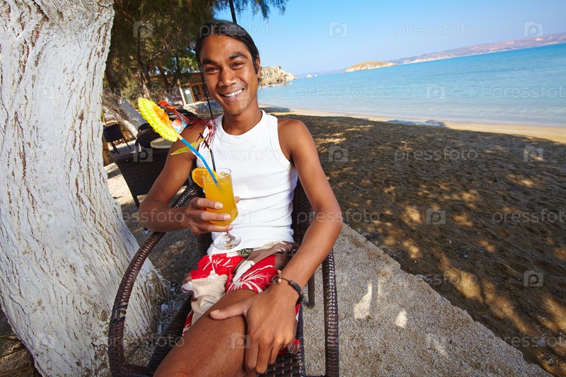 Мужчина с фруктовым коктейлем
