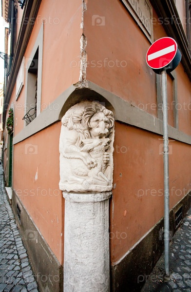 Античная колонна на углу дома в Риме