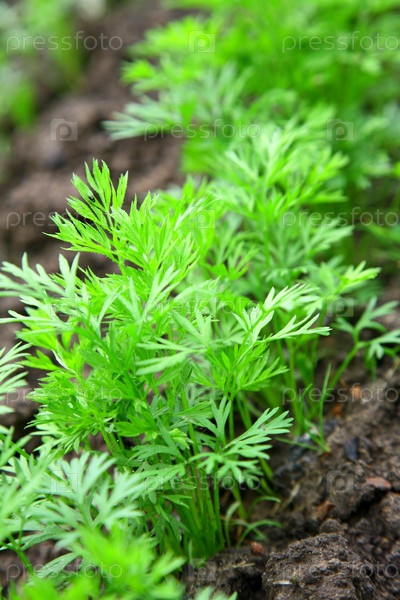 Грядка молодой моркови в саду