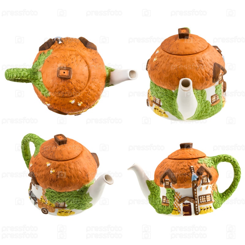 Английский керамический чайник на белом фоне
