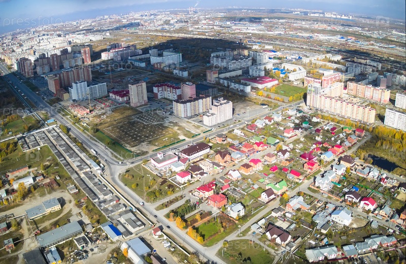 Вид на город Тюмень с вертолета. Россия