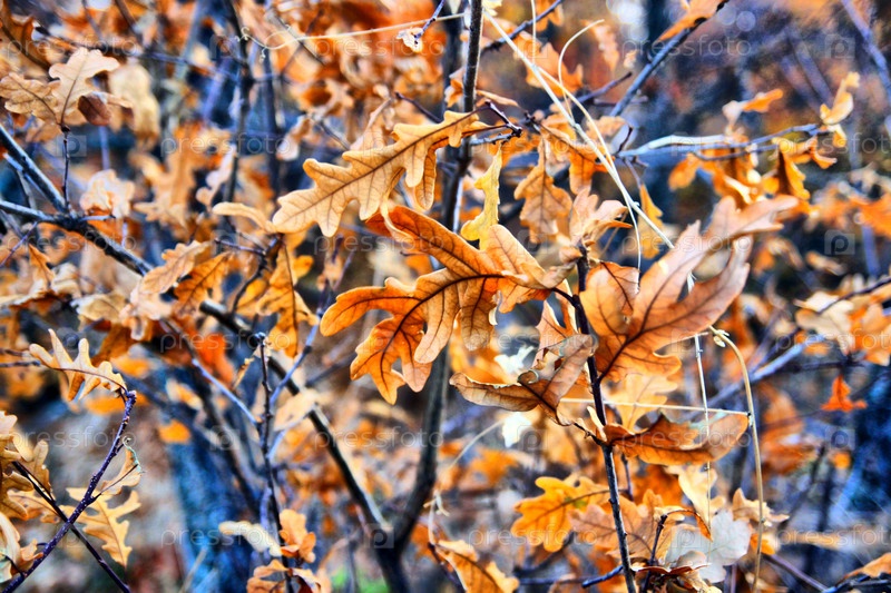 Оранжевые осенние листья на ветках, крупный план
