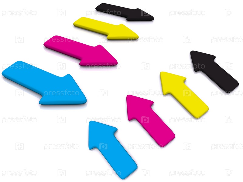 CMYK-показатели, 3D-иллюстрация на белом фоне