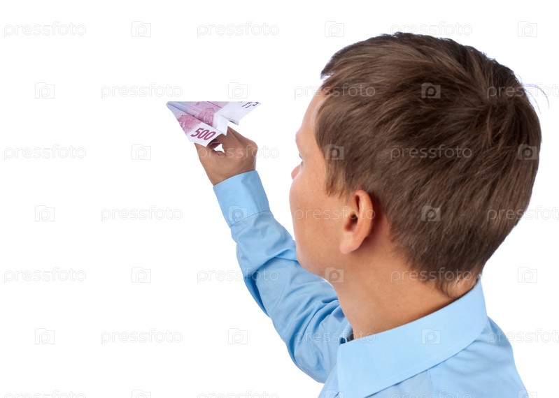 Беспечный бизнесмен пускает самолетики из денег