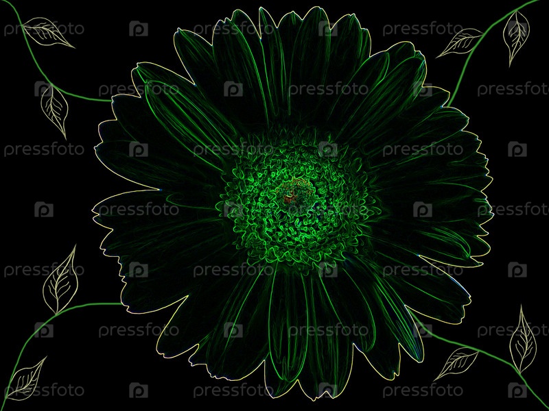 Черный фон с зеленым цветком