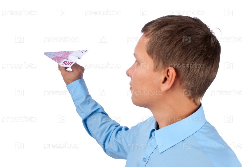 Беспечный бизнесмен пускает самолетики из денег