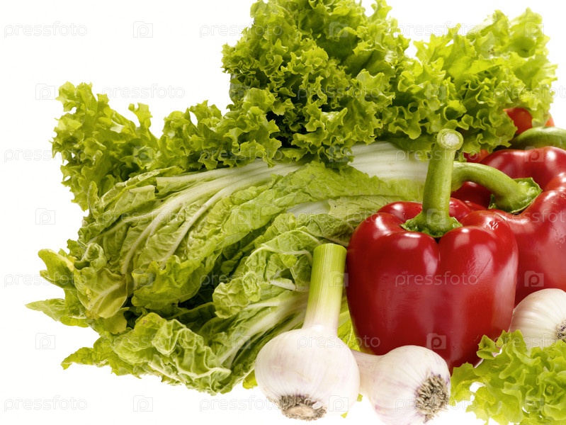 Свежие вкусные овощи на белом фоне