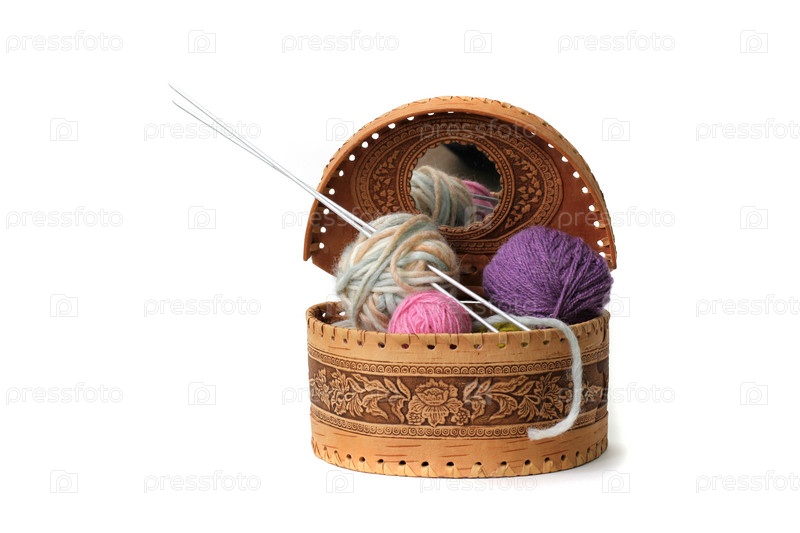 Пряжа и спицы в коробке