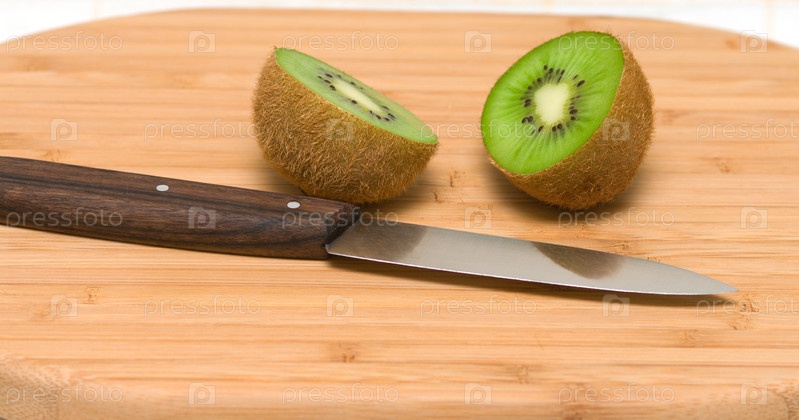 Две половины киви на доске для резки