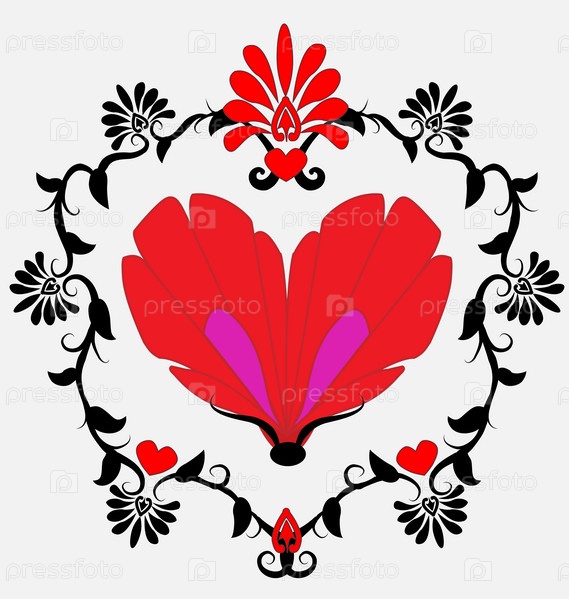 Красные крылья бабочки в форме сердца в цветочной рамке