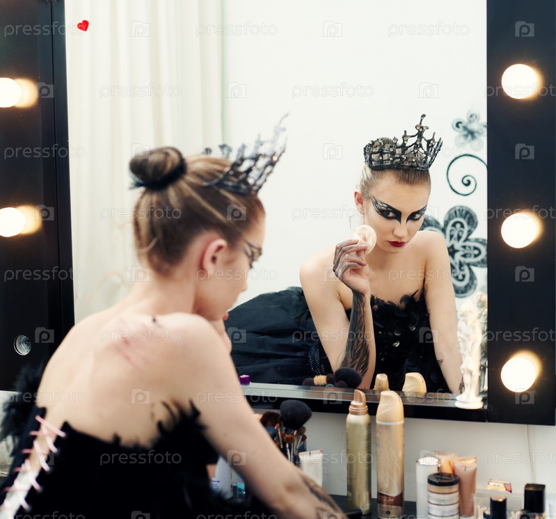 Балерина в черном перед зеркалом
