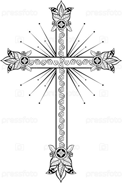 Христианский крест с декоративным орнаментом на белом фоне