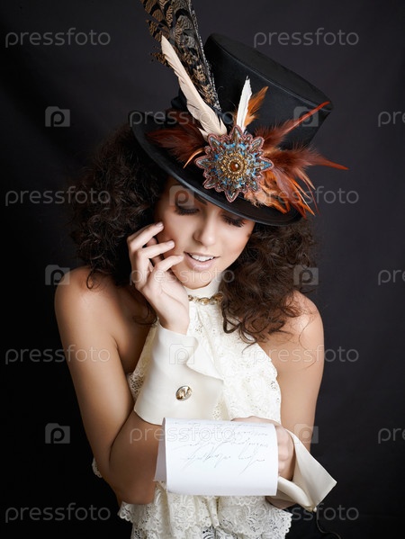 Красивая девушка в шляпе читает письмо