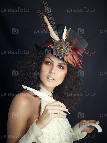 Красивая девушка в шляпе пишет письмо