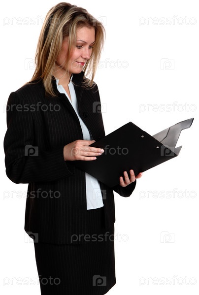 Девушка в деловом костюме с папкой в руках