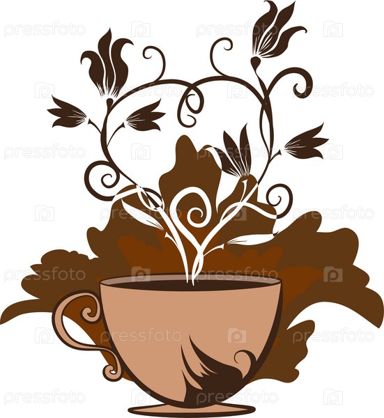 Цветочный орнамент в форме сердца над чашкой кофе