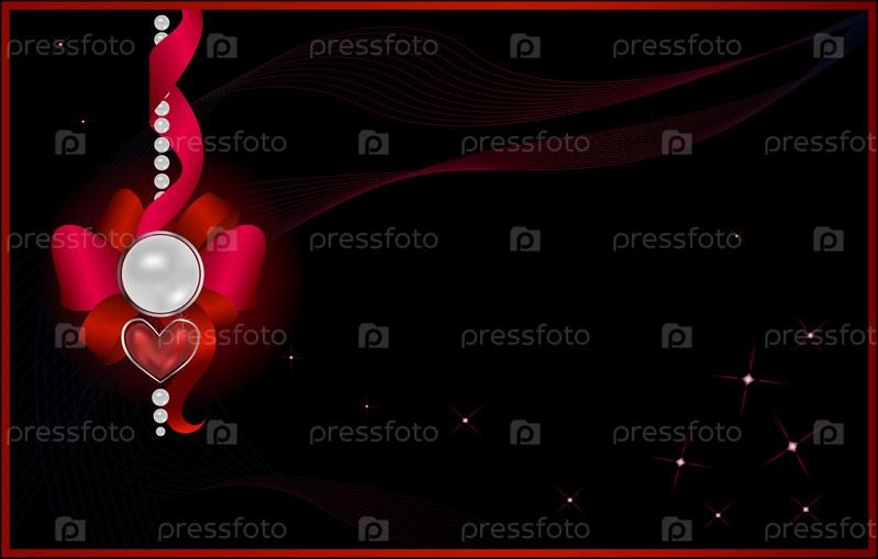 Жемчуг с красной лентой и сердцем на фоне звездного неба